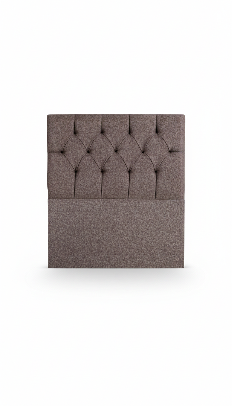 راسية خشب بالكامل، منجّدة بخياطة عميقة تمنحها مظهراً فخماً، ومكسوة بقماش متين وناعم يضيف لمسة راقية لغرفة النوم.