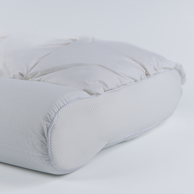 تصميم المخدة يعطي وضعية مثالية للرأس والرقبة، بفضل الأسطوانات الداعمة اللي بتحافظ على توازن الرقبة أثناء النوم.